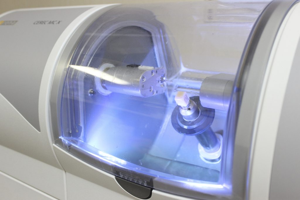 当院では、セラミック治療システムを導入しています。これはコンピュータによって被せ物や詰め物といった歯の修復物を設計・制作するシステムです。